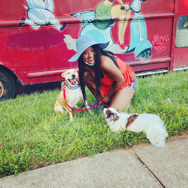 Sheldon (2.5, harlequin) is her best bud and brings out her confidence.